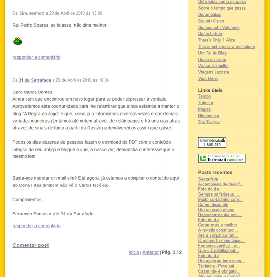 Este comentário e foi deixado no primeiro post do Carlos Santos no Corta-Fitas. Deixamos aqui um screenshot que isto nunca se sabe o que pode acontecer.