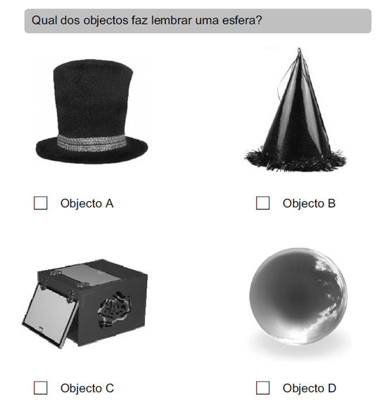 Ora deixa lá ver... Qual dos objectos faz lembrar uma esfera? ... Será a esfera?.... Não... Será a esfera mesmo? Será que uma esfera faz lembrar uma esfera?