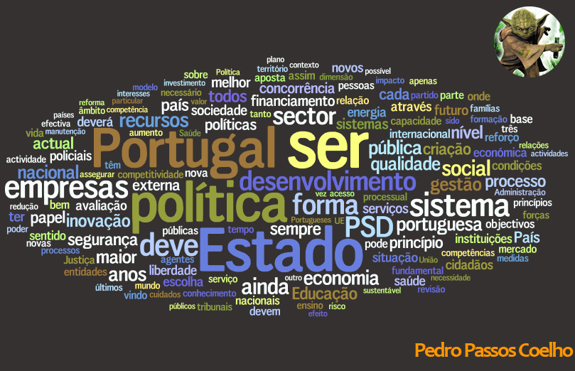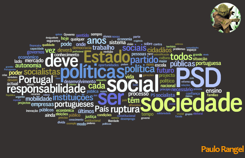 Ler "calhamaços", como lhe chama Ascenso Simões, não é para todos e as ferramentas andam por aí, é só saber usá-las. Apresentamos aqui as moções dos 3 principais candidatos à liderança do PSD, em formato de Word Cloud, conseguido por introduzir o texto completo das moções de cada candidato numa bimby. Os PDFs das moções fomos sacar ao Jornal "I" excepto o de Rangel que nos foi indicado por TAF (apoiante de Pedro Passos Coelho,para que não restem dúvidas, mas que sabe disto a potes e sabe usar o Google melhor que nós, que é mais bonecos e coisas assim)