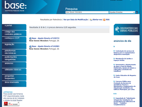 Um pouco por todo o lado, em blogs às centenas, nos jornais e nos noticiários, foram surgindo vertiginosamente casos cada vez mais escandalosos de gastos faustosos, alguns deles tão absurdos que depressa se começou a suspeitar ou da fiabilidade dos dados ou do algoritmo de pesquisa que permitia obter tão extraordinários resultados. Ora, os dados provinham todos de um site governamental, o BASE, onde se encontram os "ajustes directos" contratados pela Administração Pública, e a pesquisa era efectuada por um "site" externo, tendo o "motor de busca" sido desenvolvido por uma organização independente, a ANSOL.