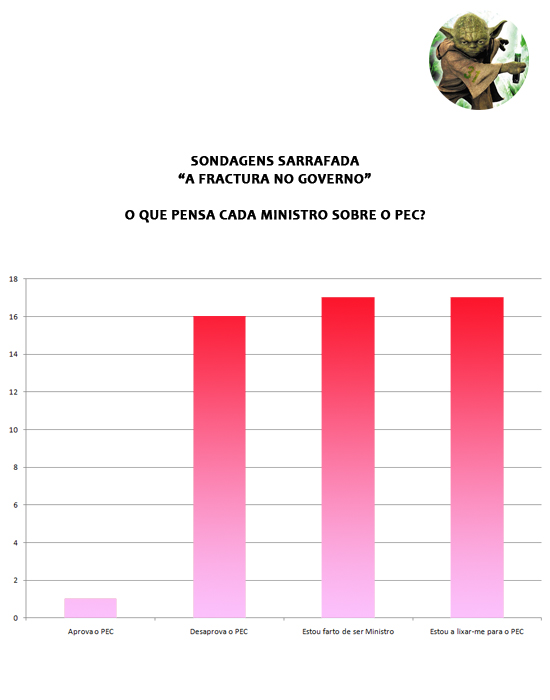 Agora, é o caminho mais fácil. Aliás, chegou a hora dos fracos sairem de cena de fininho para, na hora do funeral, poderem até alinhar na maledicência ao falecido bem como os oportunistas que, percebendo que terão de colocar na loja o letreiro do 'Volto Já', começam a encher o porquinho mealheiro para o tempo de vacas magras que se avizinham. Há até números que, oportunamente, aparecem nestas alturas libertando apenas comentários do género "Que grande novidade!" A minha dúvida é só esta: esta sondagem reflecte o momento ou um sentimento de leitura mais ampla?
