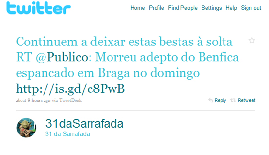 Não se encontra o Tweet original do Público mas o RT é legítimo e não foi adulterado como se pode verificar indo ler estes posts aqui e aqui.
