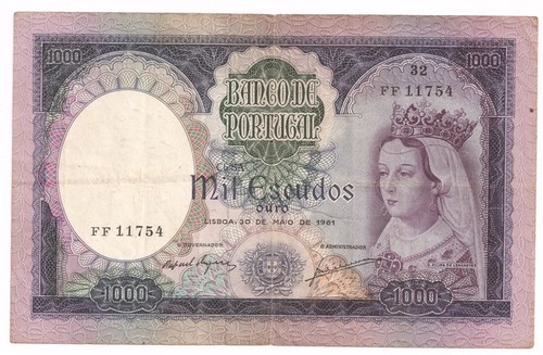 (Na imagem nota de 1000 escudos com a efígie de Filipa de Lencastre)